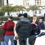 After the troopers took the arrestees across the street, I calmly gathered my children and started toward the car. I certainly did not want to keep them in a place where they might be subject to violence or see their mother arrested for chalking. They were both teary. We walked for a minute. Then, I literally asked my children to stop for a moment while I thought. As a parent, you really have to do this sometimes. Sometimes, you have to stop and figure out what is best. If we left at that moment, what lesson were they going to learn? What meaning would they make of what just happened? Of course we were going to be discussing this at length; that goes without saying. But what would they take away from this event if, having told them it was not right for the police to arrest those two people, I simply walked away, too. I knew, already, I wasn’t going to go back to the chalking corner. So I simply turned around, crossed 11th Street to the Capitol, and I told my children I wanted to talk to the troopers, to see if I could understand what was going on.