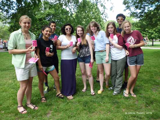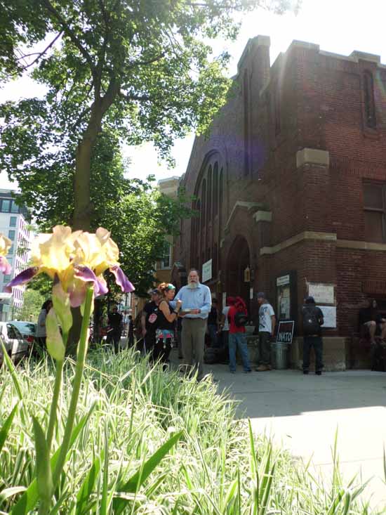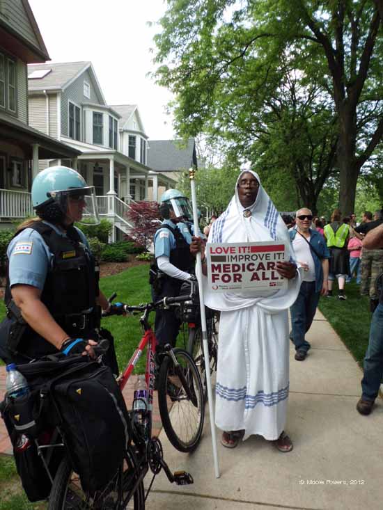 When our chauffeur arrived with his big ass bus, we headed to the back to hang with our new heroes, the Bay Area Nine, who’d been through hell and high water to make it to Chi-Town. Our destination was Homer Park, which served as a staging area for our scheduled protest outside the Ravenswood home of Mayor Rahm Emanuel. Our aim, to exercise the First Amendments rights he’d tried so hard to quash outside his front door.