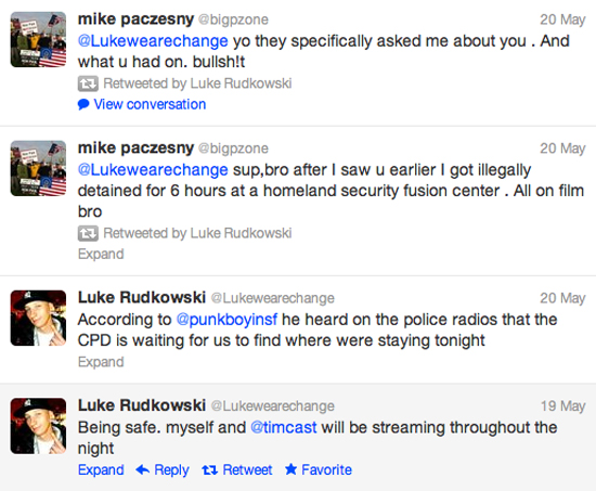 Walking through the streets of Chicago, I fell in step with Luke Rudkowski a.k.a. @Lukewearechange, who was giving an on camera interview as he did his livestreaming thing. Listening in, I heard him talk about how he’d spent the night at a “safe house” outside of the city. This was a precaution several other streamers had thought it prudent to take. “We stream live, raw and unedited for people to make up their own mind,” explained Luke to the old guard reporter. “It’s a very weird situation when homeland security is interviewing your friends about you.”