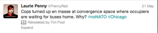 Editor’s note: This is part of a collection of first-person accounts from #noNATO. Don’t let the corporate media speak for you, if you were in Chicago tell us what you saw. Submit your story. This post originally appeared on Suicide Girls Blog. Read parts one, two, three, four (parts one and two) and five.