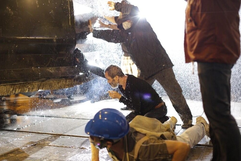 - A bulldozer was captured to counter-attack riot control vehicles, and water cannons were pushed out of the streets.