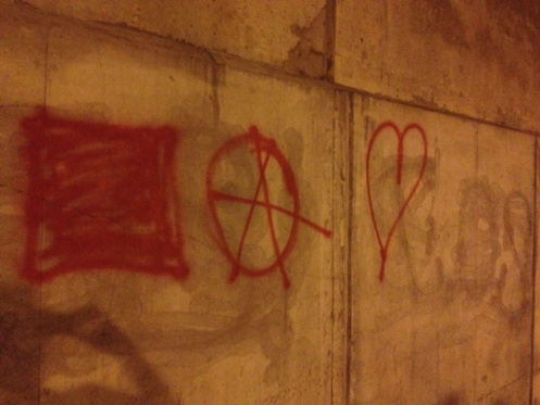 Yet again I’m back to what feels like “lost in translation” even trying to explain it. The power — the social power — of this movement was the greatest I and many of my friends and acquaintances here have ever experienced. You come so damned close to what might just start tipping the scales toward a better world, closer than you ever dreamed possible, and in a matter of a few hours on a Monday earlier this week, it suddenly seems as if it all vanished into thin air. So many of us walked together on that illegal night demo on Monday evening, processing ad nauseam, until I think we all managed to convince ourselves again of spit and fire and hope. That we shouldn’t give up so easily. That now, more than ever, the social side of this movement had to step up, both in terms of what it is doing organizationally and to make its solidarity clear, so those still-striking students would know they have allies. Because if they vote to remain on strike, the state and police will certainly exert renewed and likely harsher force.