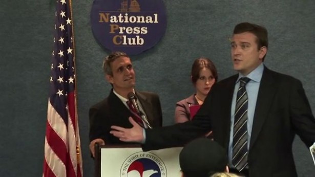 Step five: You want members of the press to show up at your press conference and that the room is packed. After all, you’ve got a great speech, and you’ve got Yes Man Andy Bichlbaum styled out in a $20 thrift store suit. Solution: Contact some friends and colleagues in D.C., ask them to dress business casual and show up at the National Press Club with reporter notepads, and to be ready to ask the Chamber of Commerce some tough questions on climate change.