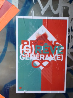 Minus One: Me. I can now read the words in the photo that started this piece, and because I’ve been a participant-observer within a specific moment/movement, I can increasingly read key words and phrases, and maybe sometimes understand them when I hear them. Like grève étudiante: “student strike.” Or better yet, grève sociale: “social strike,” which I can also even somewhat pronounce. And I now generally get the play on (g)rève, with rève meaning “dream,” as in the above-photographed street art. At the time I snapped this shot about a month ago, I didn’t know that. I also didn’t know the designer behind this poster. Now I know both, so can share both (hence, credit and appreciation to LOKi design’s #ggi downloadable poster portfolio, ready for others walls, http://lokidesign.net/2356/2012/05/ggi-poster-portfolio/#more-3007).