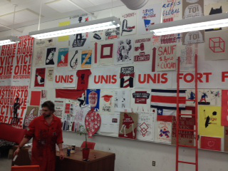 So I’m going to embrace being that love-struck outsider and impressionistic word-painter role in a romantic rebel city, so that you — my love-struck outsider friends — can see this movement-narrative unfold, because I’m counting on that freshness, that openness, pointing beyond itself, to help us in our resistance and reconstruction elsewhere. If this is a foolhardy performance at times, that’s a risk I want to take, because of something that a 20- or 21-year-old student striker artist said to me and a friend several weeks ago. He said it in English, haltingly, so hence my notion that things actually are both “lost” and “found” in translation. What he said — versus what he probably would have more fully or altogether differently said in his French language — might not have been this at all: “No school, but learning.”