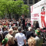 Day 3 on the 99Solidarity Bus Trip: The bus from LA is now in Chicago, where the group attends the Robin Hood Tax Rally with a performance by Tom Morello.