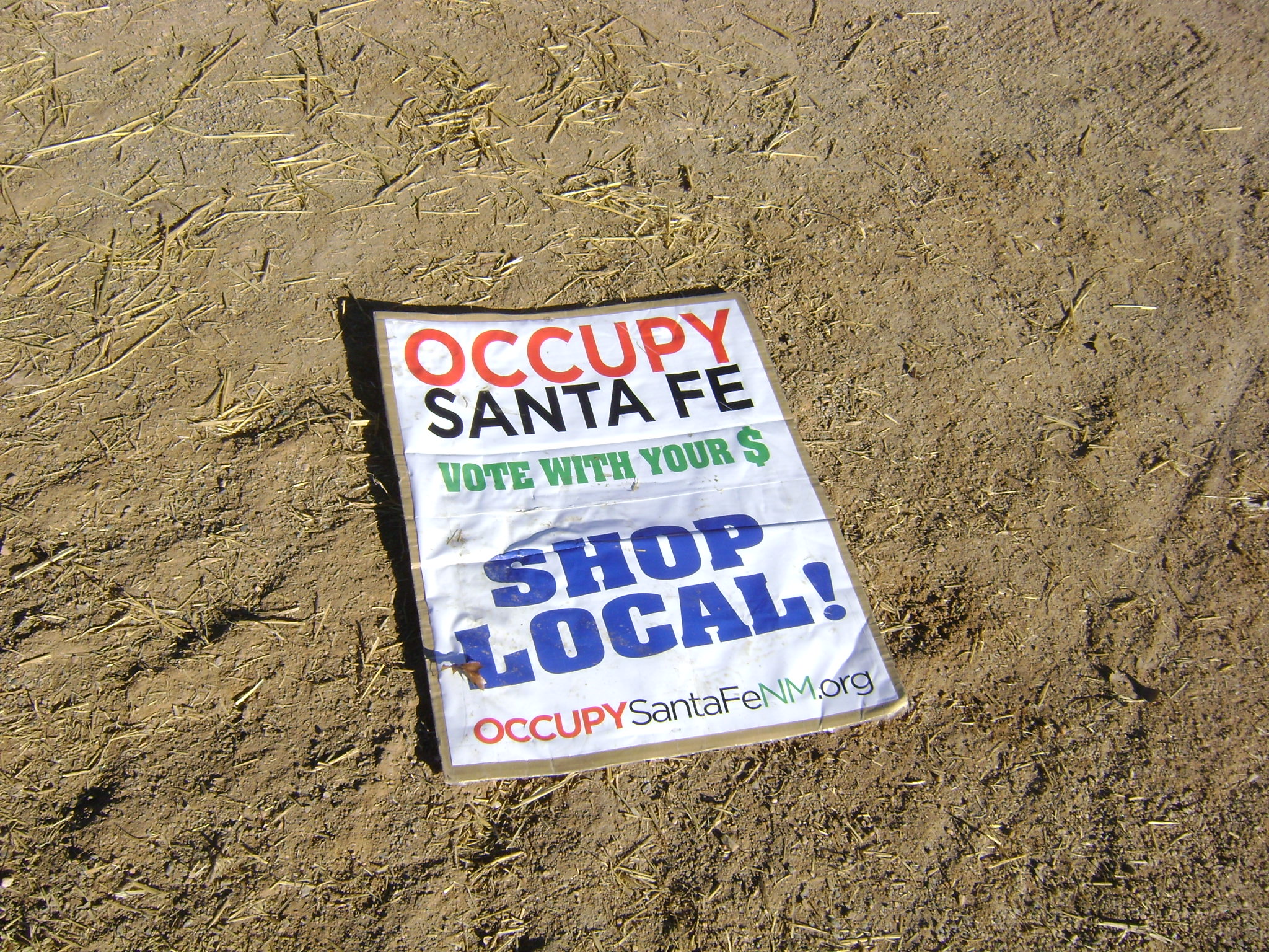 I have been involved in my local Occupy Santa Fe movement since our first day of action, outside Bank of America, on October 1st. I was struck then by the hope and inspiration that lit up the 60 or so faces of the people around me, and the almost constant sound of honking horns as passing drivers enthusiastically signaled their support. Since then we have held further rallies, organized marches, mic checks, workshops, teach-ins, and begun political campaigns. We have gathered for General Assembly three times a week, we have launched countless Working Groups, and we maintained a physical occupation almost consistently for three months.