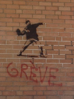 Two mornings ago [night 51], while working in a cafe, a guy sat down next to me to read Guy Debord’s Society of the Spectacle. This simple act not only warmed my heart; it got me thinking. I and at this point hundreds of thousands of others haven’t so much been participating in illegal marches night after long-walk night in Montreal. Instead, we’ve been engaging in illegal and subversive dérives, in which we encounter the city in new and authentic ways — hence the subversive part — letting serendipity self-direct us, rather than the commodified or policed cityscape.