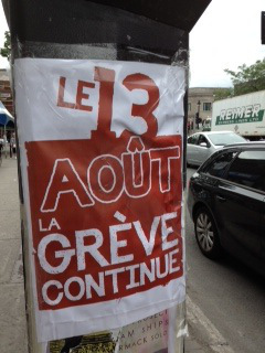 Or better still, as this poster around Montreal proclaims: “On August 13. The Strike Continues.”