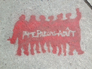 Someone suggested they create a giant “calendar” on the chalkboard, which only underscored the incredibly complex communications and organizational task ahead. For instance, 4 schools open on August 13, and many of the schools are nowhere near each other geographically. How to communicate what all the student assemblies decide (including one that is supposed to meet the same day that the students are supposed to return to their classes at that school) to all the other schools, and all the students, and all the neighborhood assemblies, teachers, parents, allies, media, and the list went on. After some 45 minutes of trying to even begin to figure out a calendar, the task of doing so seemed to be abandoned in favor of trying to talk about the communications and organizational quagmire. I had to leave to get back for the Mile-End popular assembly, but the council meeting reminded me that, first, this strike is remarkable in that given all this complexity, the students have so far figured it out and stayed on strike, using these face-to-face decision-making structures; and second, as this sidewalk stencil from Mile-End urges, there’s a need to: “Prepare for August!”