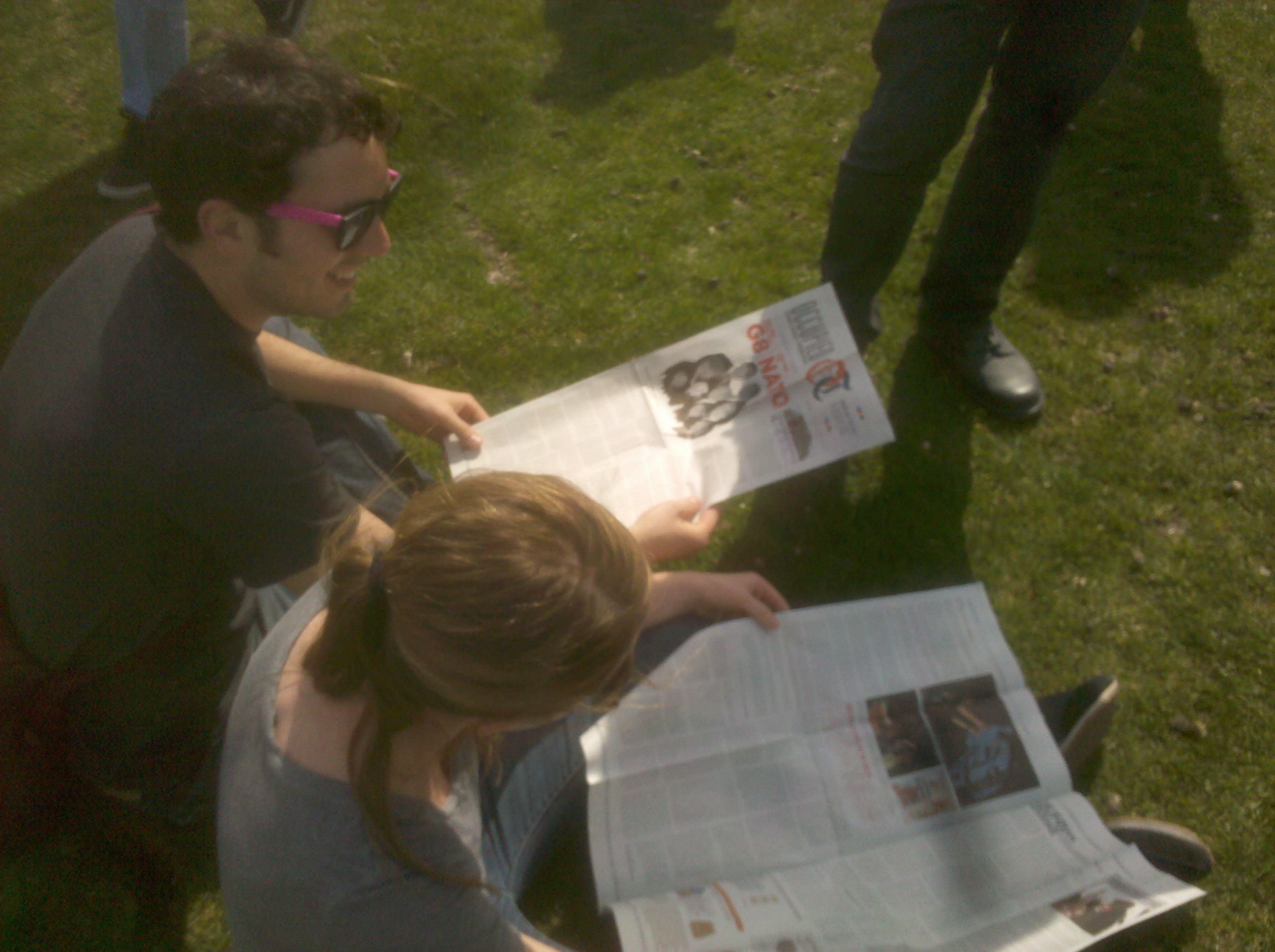 Reading the Occupied Chicago Tribune in Butler Field. (Photo: Joe Macaré)