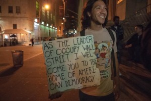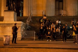 Soon lovingly nicknamed the “Freedom Cage,” occupiers made it their home and over the next few weeks. I spent several days and nights in groups of at least sometimes 25 or less along with a contingent of NYPD and US Park Rangers to keep us safe (and awake). At first, K-9 and SWAT units guarded the area, but as time went on and the cops got bored watching people talking to each other, they disappeared, until finally the Park Rangers stopped showing up completely, and two lowly beat cops sitting in their car around the corner was all that remained.