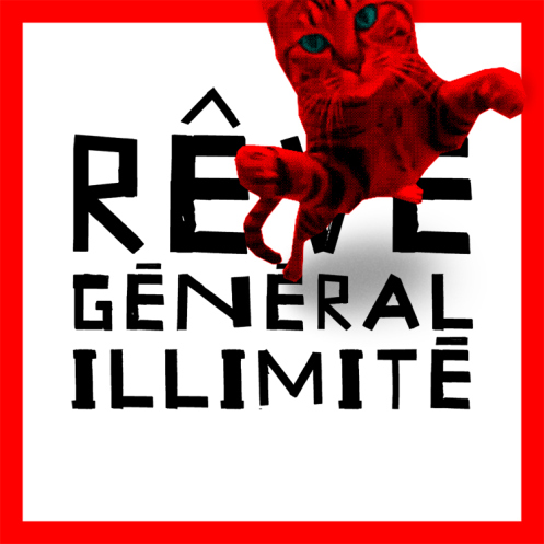 From the inspiring large student strike to more modest flights of fancy like this Thursday, July 5′s creative intervention, or manifestive, at the Jazz Festival, toward general unlimited dreams. Wow! Or meow, as the striking graphic for the Rêve Général Illimité exclaims! (For the story and designer behind this graphic, see LOKI design’s Web site, http://lokidesign.net/2356/2012/07/reve-general-illimite/.)