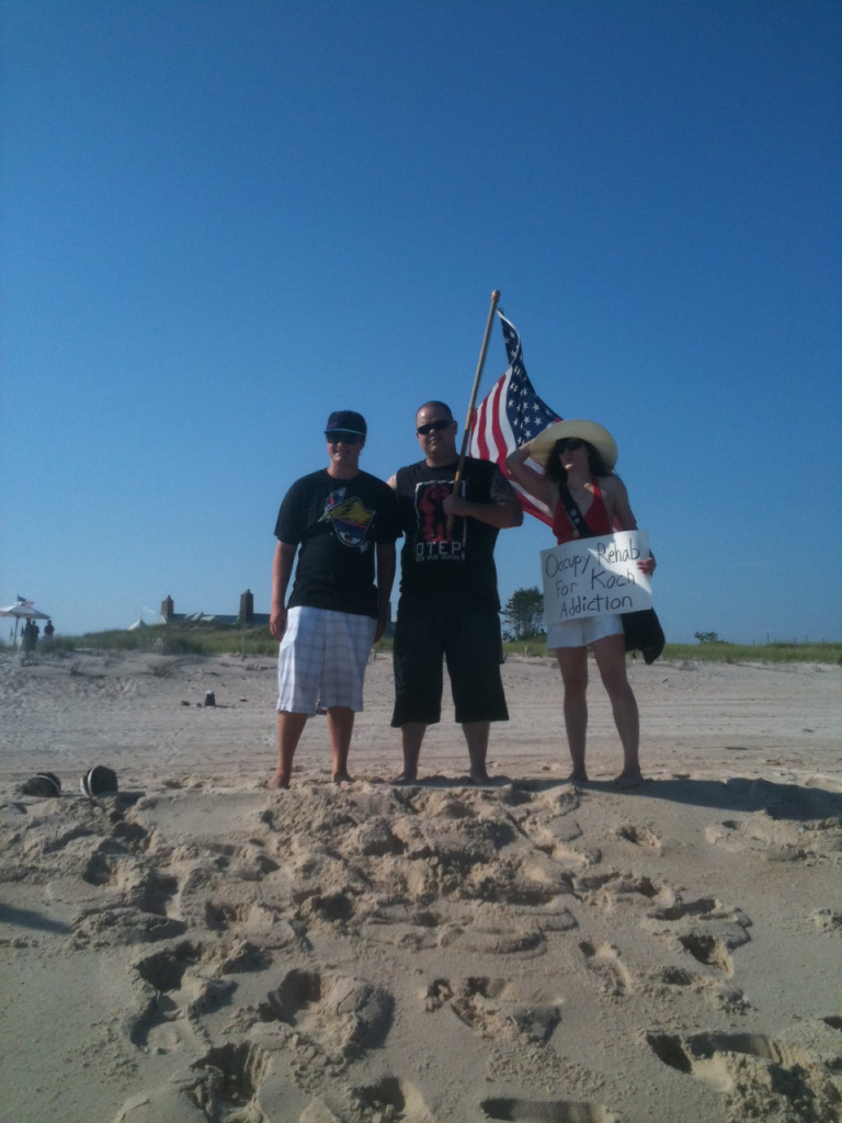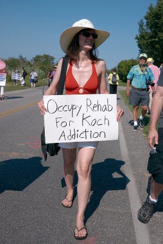 Southampton, NY-It’s never easy to take the dramatic step of confronting an unfortunate soul about their dependence on a dangerous substance and the harm it is doing to those around them. On Sunday, July 8, OWS, Occupy Storefront, The Long Island Progressive Society, United New York, and other groups, joined together at an intervention in Southampton to talk to Mitt Romney about his Koch addiction. While Romney may not be concerned about his debilitating craving for Koch cash, the effect of his (and Obama and other politicians) obsessive need for hundreds of millions of 1%er dollars has terrible consequences for the rest of us. The $50,000 dollar per couple fundraiser sponsored by David Koch at his beach house was the perfect opportunity to get Mitt to take that first big step toward recovery: admitting you have a problem.