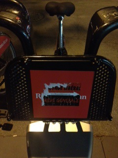 Which brings me back to the quiet bicycle with the big red-square banner, with one word (well, two, if you count the French and English versions): LISTEN.