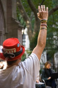 It was loud, courageous, chaotic behavior that left police feeling threatened by unarmed protesters. Why would police be afraid of unarmed civilians? Because there were a freakin’ lot of us and we all wanted a piece of the media. All it took was one stunt to set off a chain reaction of angry protesters willing to go to jail for the cause. These non-violent direct actions are the lock stock and barrel of the movement. It’s an ongoing battle of legalities and loop holes. I attended an entire class describing direct action right in battery park! I learned a whole lot about non-violent demonstrations.