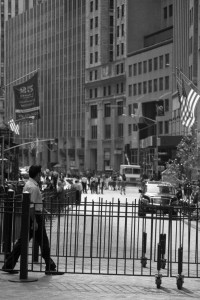 I walked right into the belly of the beast. What had started as a covert surveillance mission to find an appropriate point of entry to the golden streets, had turned into just getting a few good shots of life in a day on wall street. Prestigious golden towers hung way above the heads of those who live without worry. No financial struggles, just the comfort of their fortune. Pigs rolling in mud. It was sickening. I didn’t belong there. I spent the rest of the day trying to figure out a way to bring down wall street.