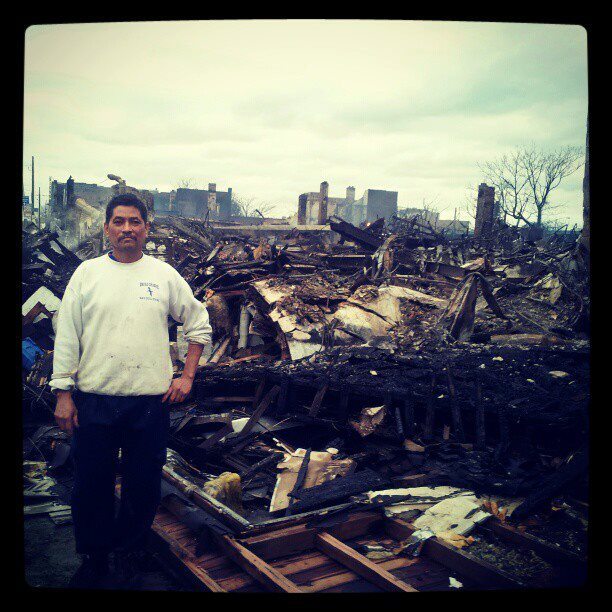 Outside on the sidewalk, the parade of pleas and horrific stories seemed infinite. A spanish-speaking family whose house was burnt down on the block told me of swimming out of their house and treading water while the flames took over it. Swimming over the train tracks behind the house, they had no idea what lied underneath or where this was going to take them. Half of the family walked away in the middle of the retelling, seemingly tired of hearing it again and again.