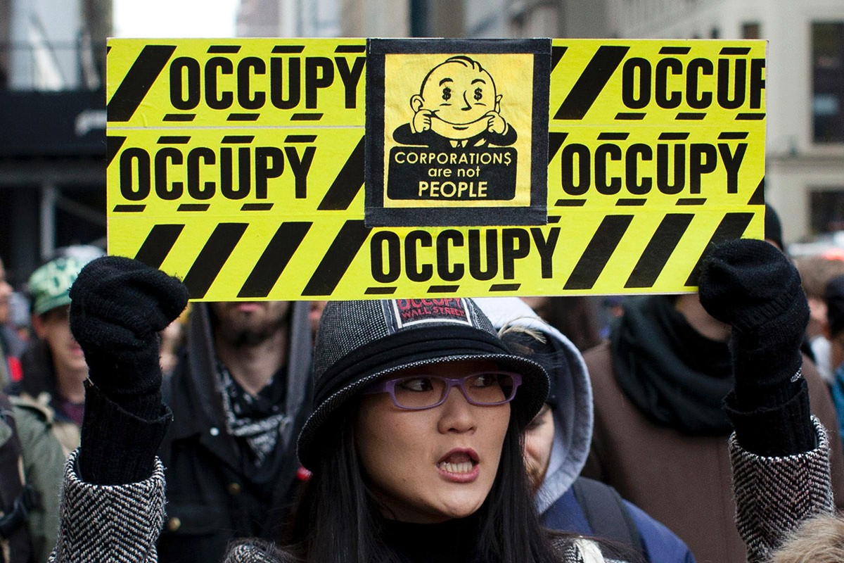 Occupiers dressed as heroic figures from America’s labor history gave speeches, including Elizabeth Gurley Flynn, who noted that the “impossible chasm between all workers and all exploiters” has not been bridged, and is in fact widening again.